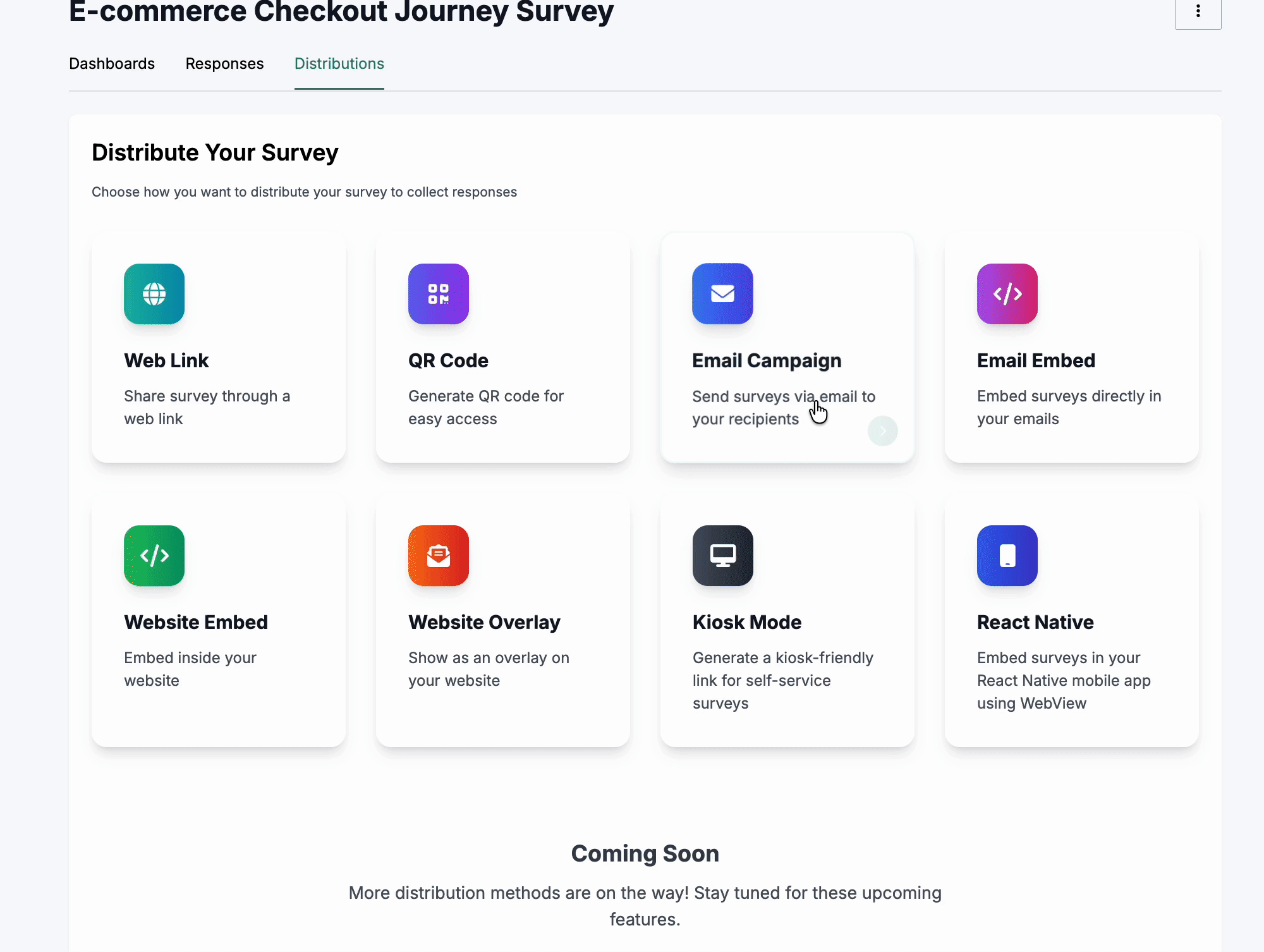 Your Distribution settings page shows view counts. If you see views but no responses, consider shortening your survey or adjusting when it appears.