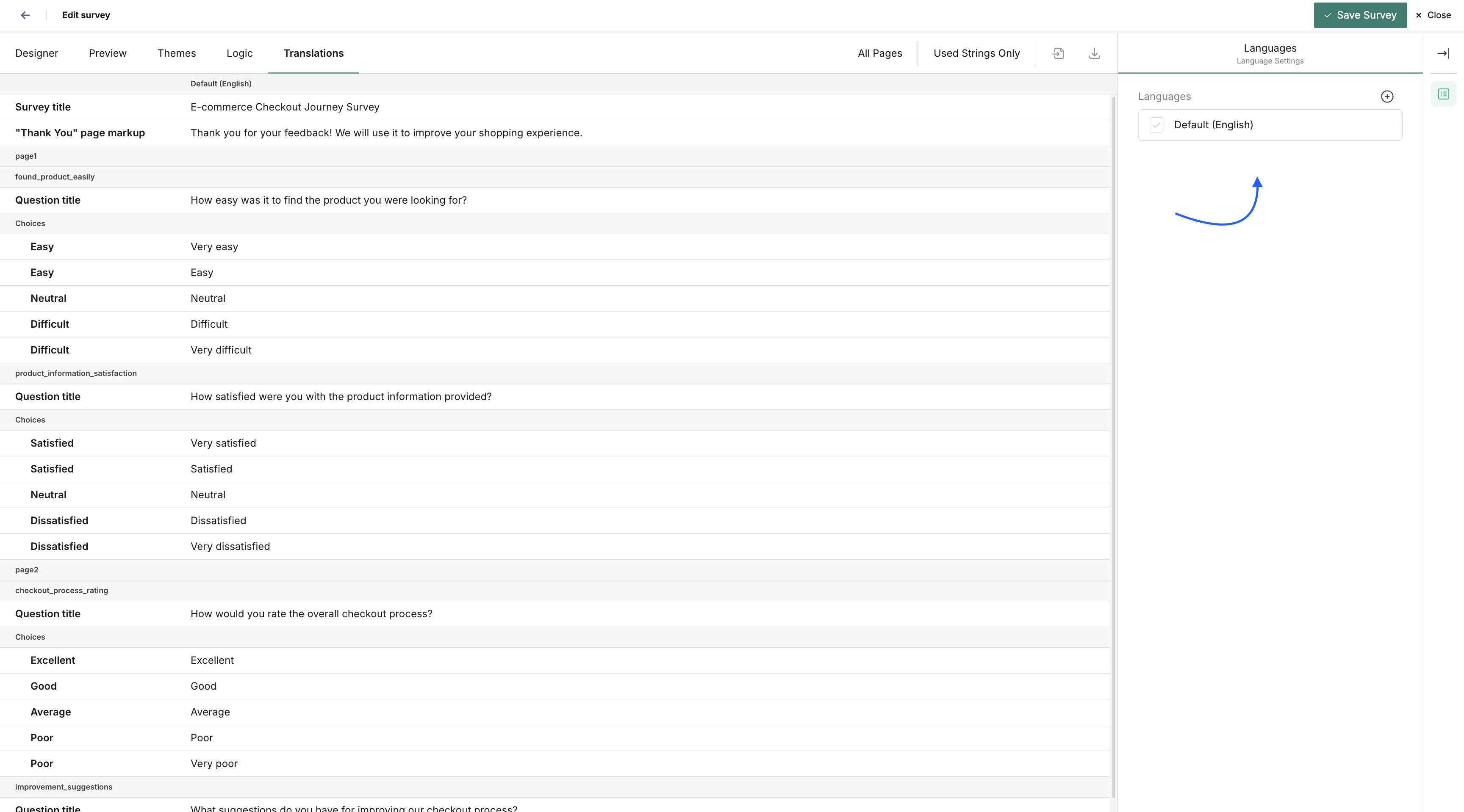 You uploaded a logo to your zen survey, but it only shows up in one language (like German) and not in others (like English).